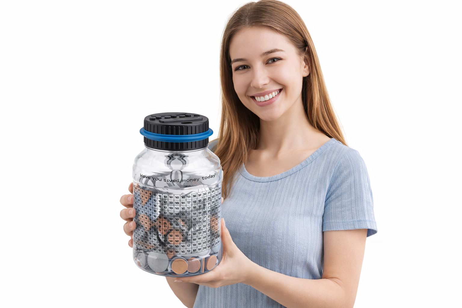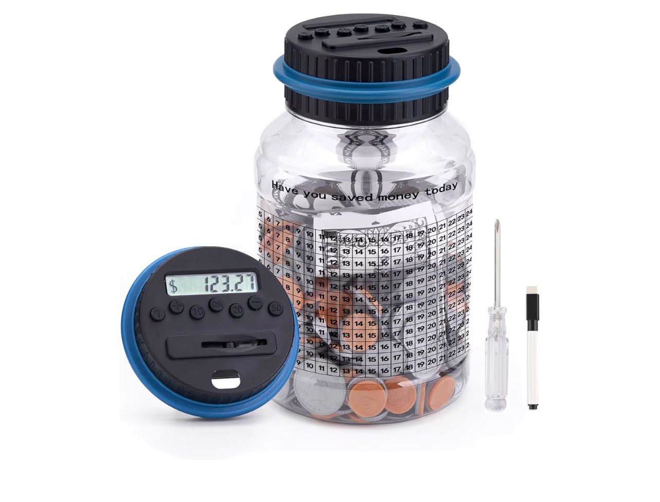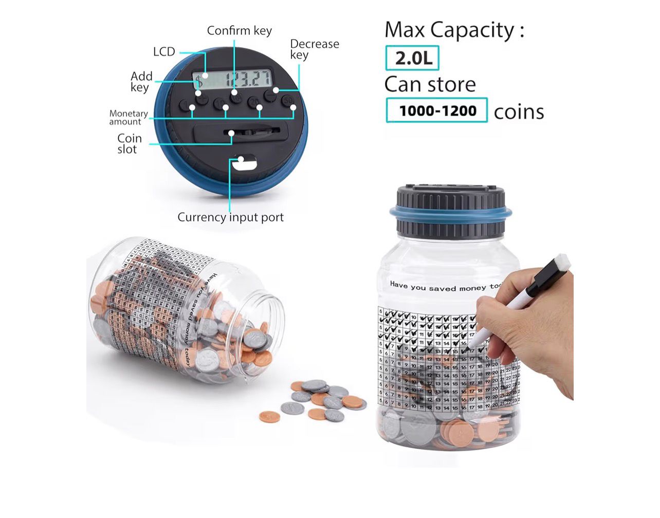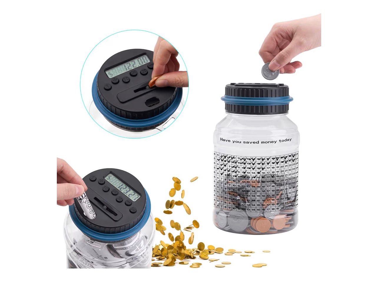Digital savings jar, coin counter, money tracking, saving habits, financial discipline, personal finance: